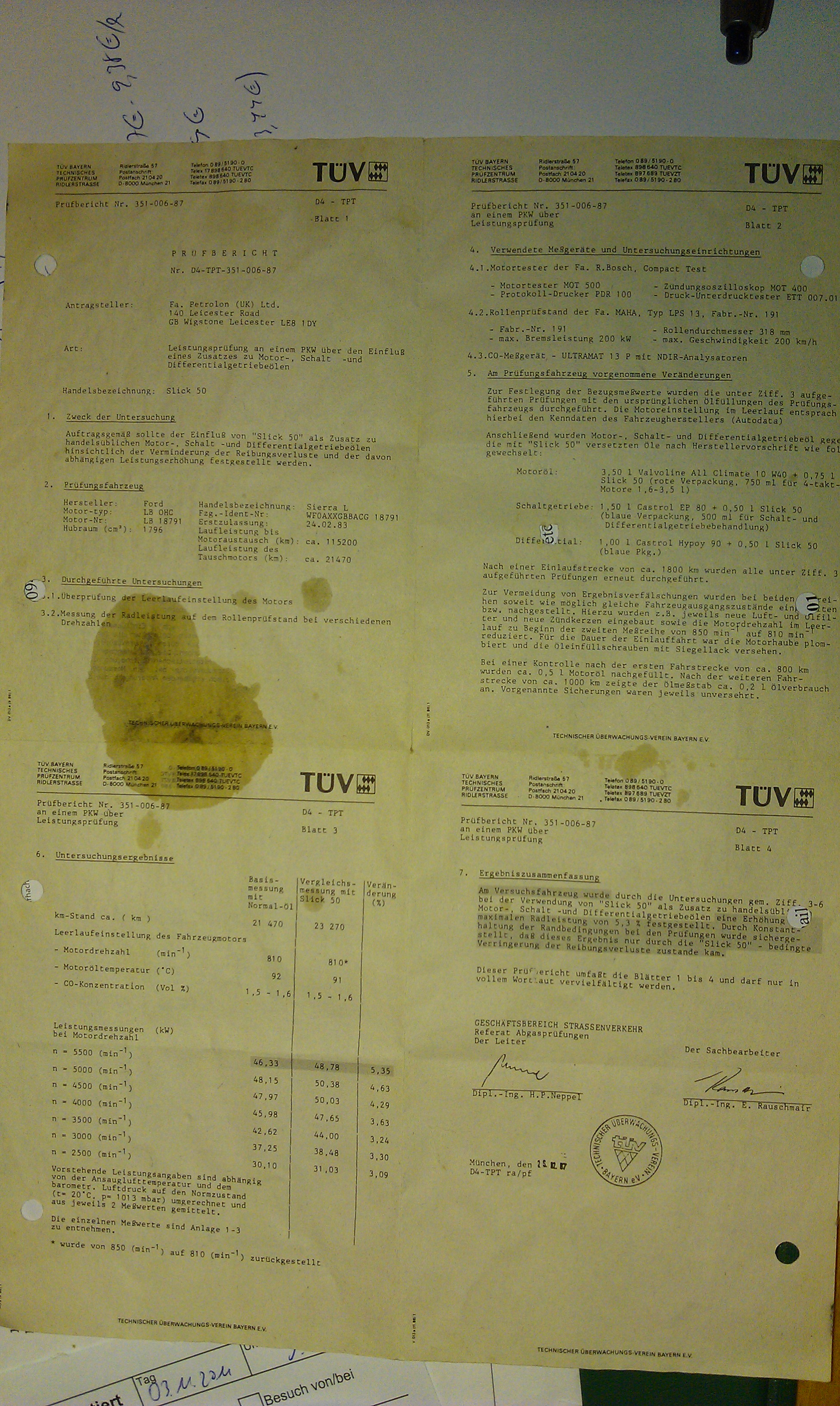Anbei mein knapp 25 Jahre altes TÜV-Gutachten über Slick50.