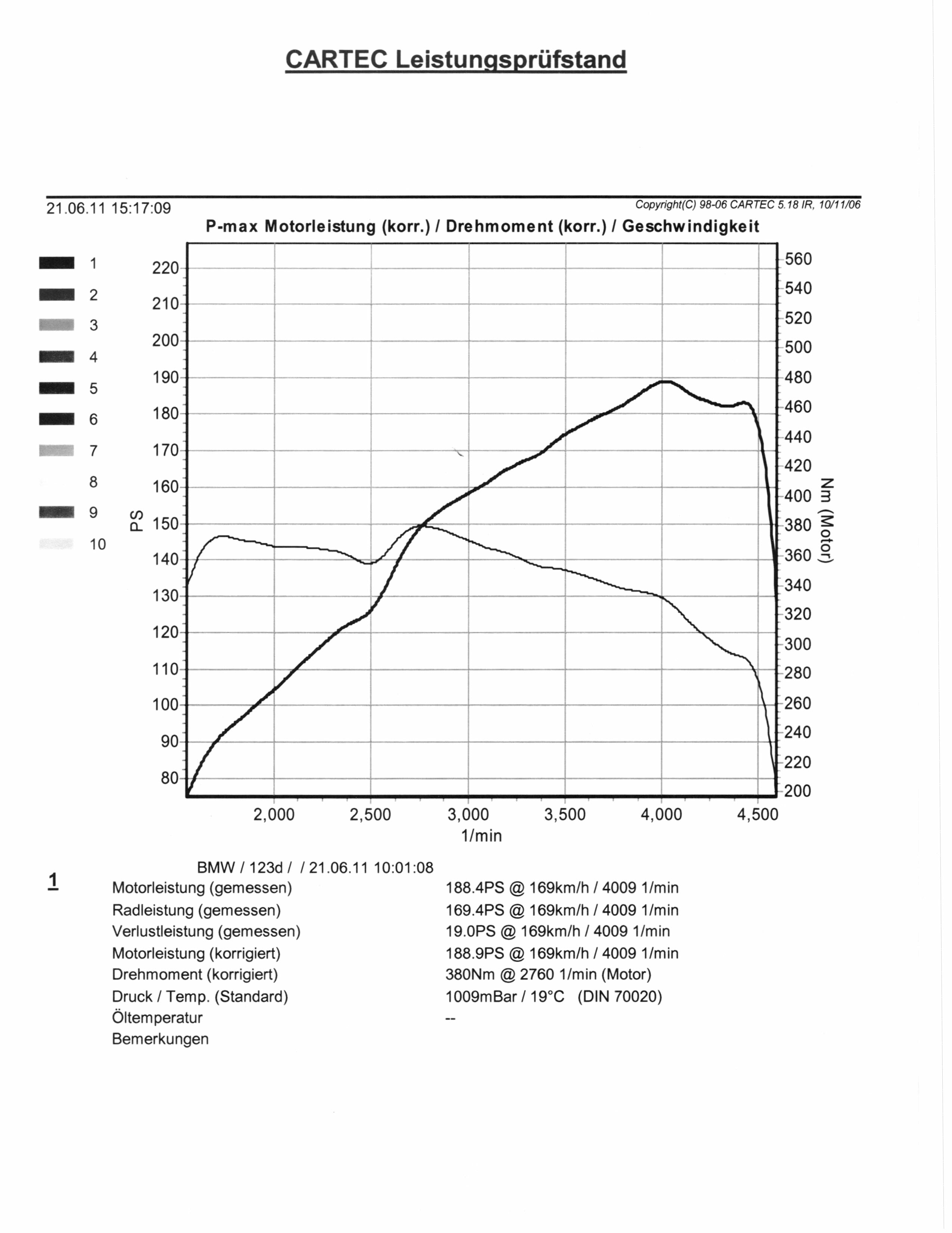 heute hatte ich den 1'er (123d) auf dem Prüfstand. Ich weiß, ist nicht wirklich genau und wenn, nur so gut wie sein Bediener. Aber, sofern kein Schlupf auftritt, sollte zumindest der Verlauf des Drehmoments in etwa hinkommen.