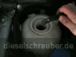 Kommt bei ausreichendem Kühlmittelstand statt einem durchgehendem Strahl dann Schaum oder ist der Strahl durch Blasen unterbrochen, drückt es Verbrennungsgase ins Kühlmittel.