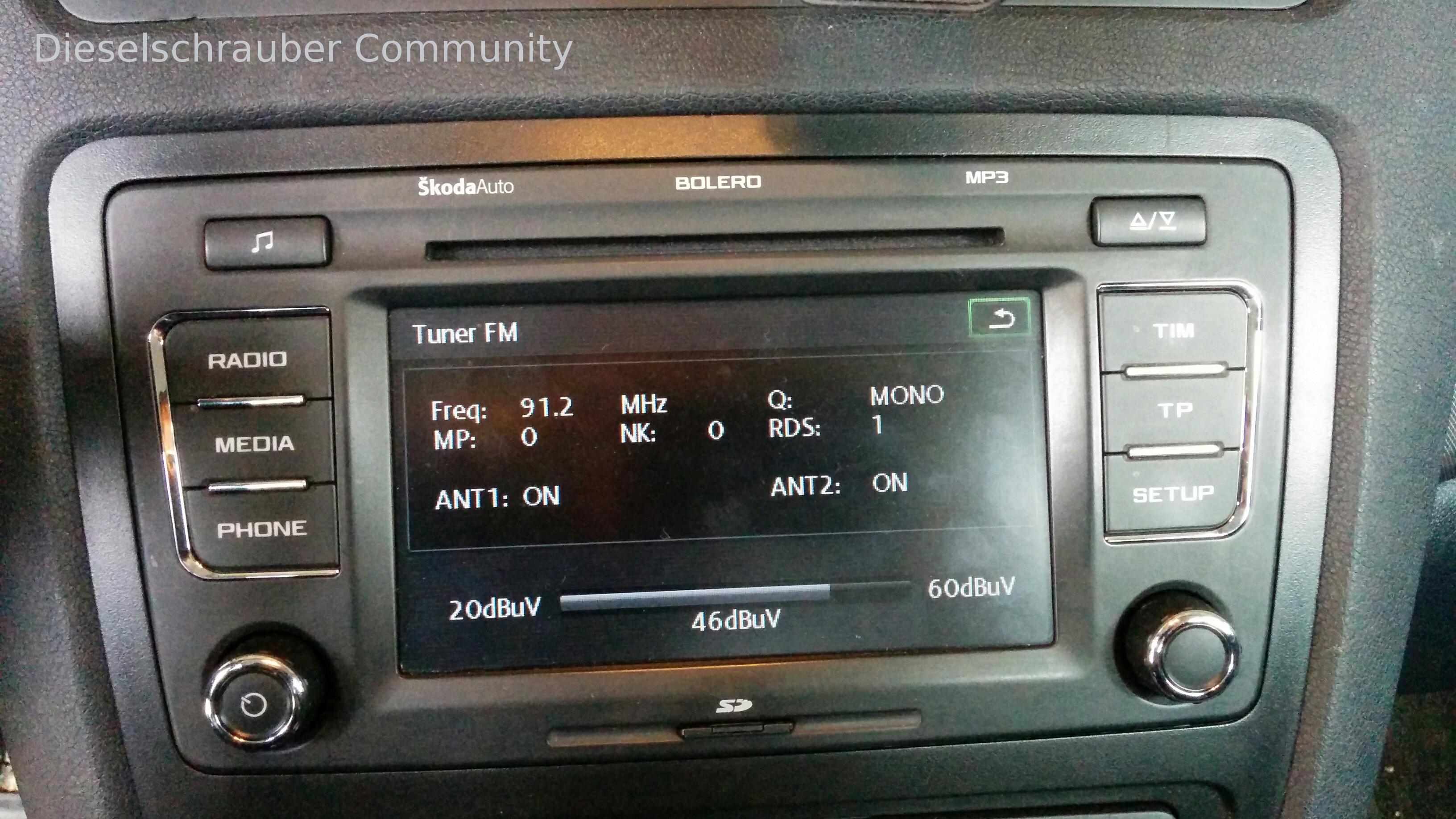 Diese habe ich (mehr oder weniger zufällig) also Antenne 2 an das nun im Auto verbaute RCD 510 geklemmt.