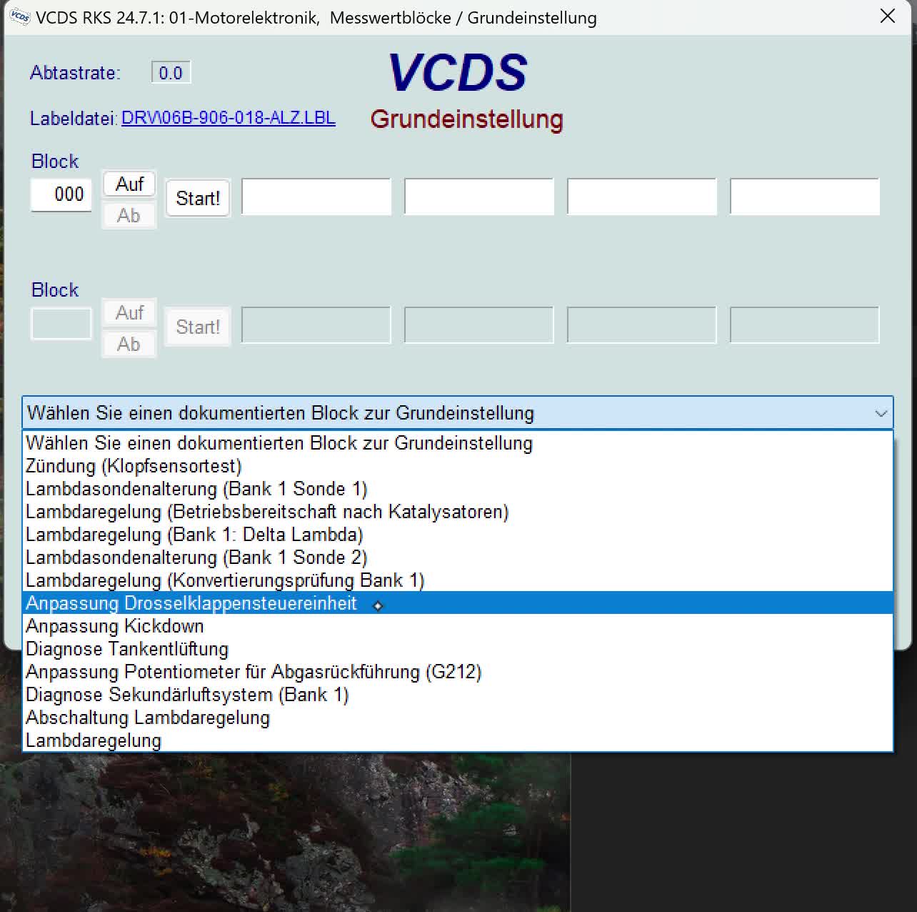 ich wollte grade die Drosselklappe eine Passat B5 ANA nach der Reinigung anlernen. Die Bedingungen waren erfüllt, aber der Start-Button neben dem Messwertblock ist ausgegraut (Bild).